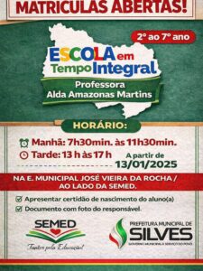 Leia maisA Escola em Tempo Integral Professora Alda Amazonas Martins inicia amanhã as matrículas para o ano letivo de 2026! Garanta...