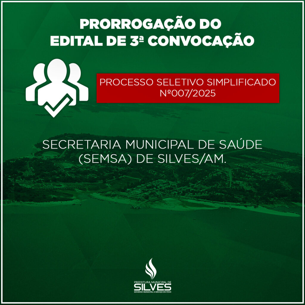 PROCESSO SELETIVO SIMPLIFICADO Nº 007/2025 – PRORROGAÇÃO DO EDITAL DE 3ª CONVOCAÇÃO